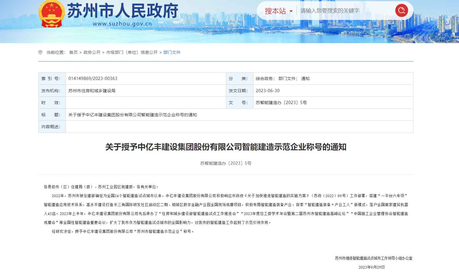 示范引領,科技創(chuàng)新,中億豐被授予“智能建造示范企業(yè)”稱號。